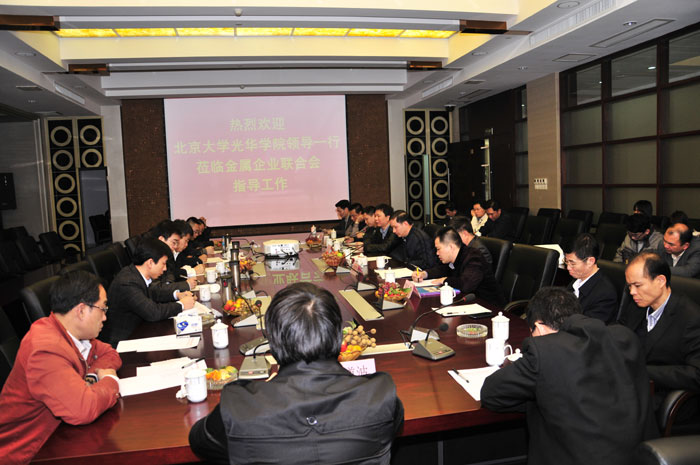 北京大學(xué)光華學(xué)院領(lǐng)導(dǎo)首先參觀了金屬企業(yè)聯(lián)合會展廳、金屬企業(yè)聯(lián)合會辦公場所,觀看揭陽金屬生態(tài)城規(guī)劃設(shè)計圖。隨后召開會議,揭陽市金屬企業(yè)聯(lián)合會會長吳克東代表金屬企業(yè)聯(lián)合會對光華學(xué)院領(lǐng)導(dǎo)到來表示熱烈歡迎,希望光華學(xué)院領(lǐng)導(dǎo)在揭陽調(diào)研的這段期間能夠?qū)饘倨髽I(yè)聯(lián)合會的建設(shè)和揭陽金屬生態(tài)城的建設(shè)能夠注入智力高能量。