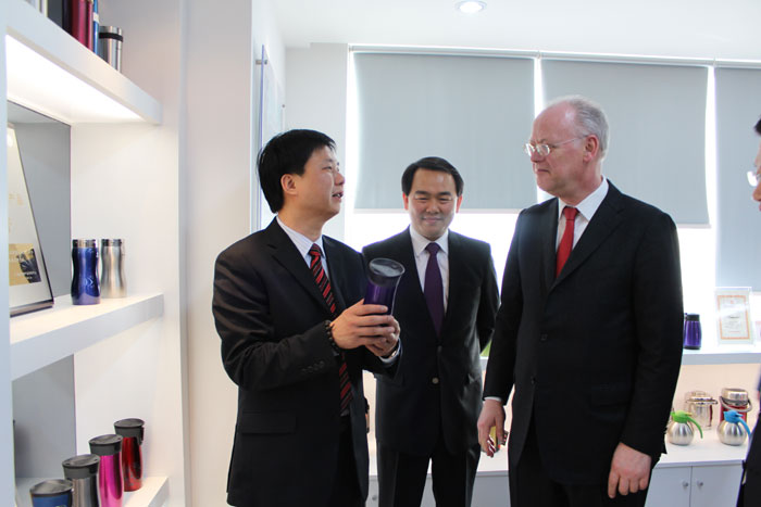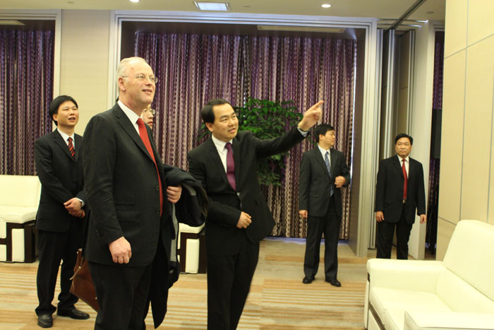 2月24日,中聯(lián)部副部長李進(jìn)軍和德國社會民主黨前主席魯?shù)婪颉ど碃柶?/A>先生一行蒞臨揭陽金屬企業(yè)聯(lián)合會,揭陽市市長陳東、揭陽市金屬企業(yè)聯(lián)合會會長吳克東陪同參觀。