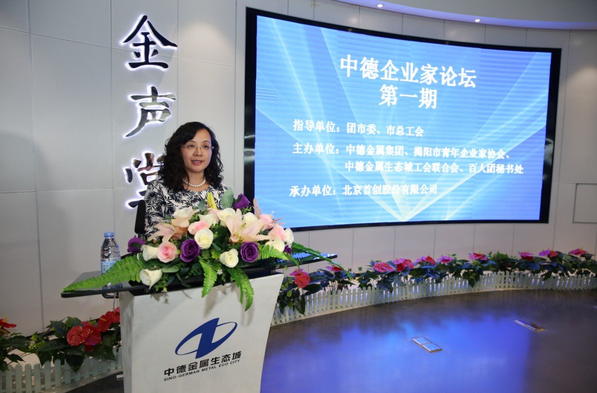 中德企業(yè)家論壇旨在貫徹落實全市經(jīng)濟工作會議的部署,緊緊圍繞平臺、企業(yè)、環(huán)境三個要素,為揭陽市培養(yǎng)更多具有國際視野的優(yōu)秀企業(yè)家和更具有創(chuàng)新發(fā)展素養(yǎng)的企業(yè)人才隊伍,服務(wù)國家“一帶一路”的戰(zhàn)略。中德金屬集團副總裁晉衛(wèi)東在致辭時表示,將以中德企業(yè)家論壇舉辦為契機,打造學(xué)習(xí)型特色園區(qū),提升園區(qū)企業(yè)家的綜合素質(zhì)和市場競爭力,進(jìn)一步創(chuàng)造條件推進(jìn)中德中小企業(yè)開展務(wù)實合作,促進(jìn)更多合作成果在揭陽生根發(fā)芽、開花結(jié)果。