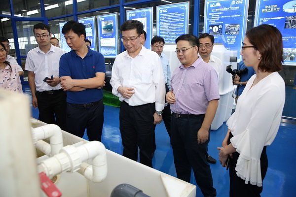 在調(diào)研表面處理中心時,黃副省長指出,中德金屬生態(tài)城最大的亮點(diǎn)在于踐行了五大發(fā)展理念,特別是創(chuàng)新、綠色的新理念,把環(huán)保與產(chǎn)業(yè)培育結(jié)合起來,通過處理環(huán)境污染問題,引導(dǎo)涉污企業(yè)入園發(fā)展形成產(chǎn)業(yè)集聚,意義重大。
