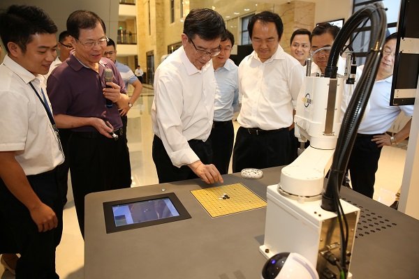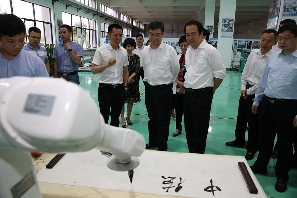 在考察中德巨輪智能工業(yè)4.0產(chǎn)業(yè)基地項(xiàng)目時,黃副省長一行觀看巨輪機(jī)器人作業(yè)演示,并對巨輪的智能裝備水平表示肯定,鼓勵巨輪不斷提高智能制造技術(shù)。