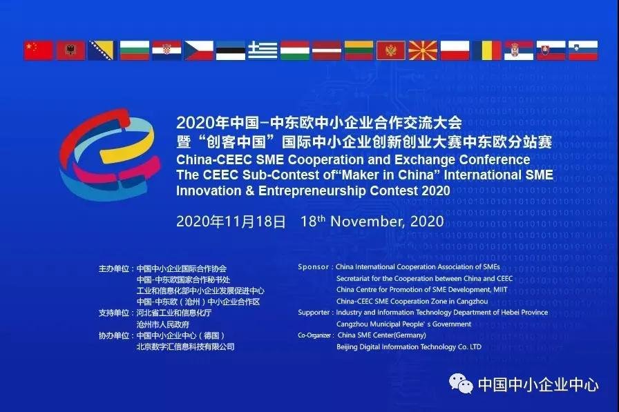 11月18日,由中國-中東歐國家合作秘書處、中國中小企業(yè)國際合作協(xié)會、工業(yè)和信息化部中小企業(yè)發(fā)展促進中心及中國-中東歐(滄州)中小企業(yè)合作區(qū)共同主辦的“創(chuàng)客中國”國際中小企業(yè)創(chuàng)新創(chuàng)業(yè)大賽中東歐分站賽線上決賽暨中國-中東歐中小企業(yè)線上對洽會在北京隆重召開。中國中小企業(yè)中心(德國)是本次會議的協(xié)辦單位。