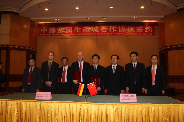 2013年4月27日,德國(guó)前國(guó)防部長(zhǎng)、社民黨前主席魯?shù)婪颉ど碃柶较壬恍性俅紊W臨揭陽(yáng)市金屬企業(yè)聯(lián)合會(huì)訪問(wèn),并與聯(lián)合會(huì)正式簽訂中德金屬生態(tài)城合作協(xié)議。市領(lǐng)導(dǎo)陳綠平、陳東、黃耿城、陳澄民、陳定雄等與揭陽(yáng)金屬企業(yè)家代表共同出席有關(guān)活動(dòng)。