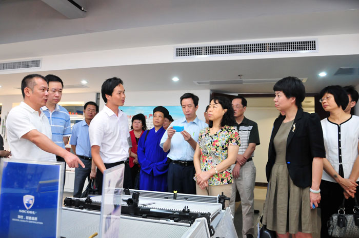 揭陽市委常委、統(tǒng)戰(zhàn)部長黃耿城(左一)率產(chǎn)業(yè)調(diào)研代表團參觀聯(lián)合會金屬制品展廳