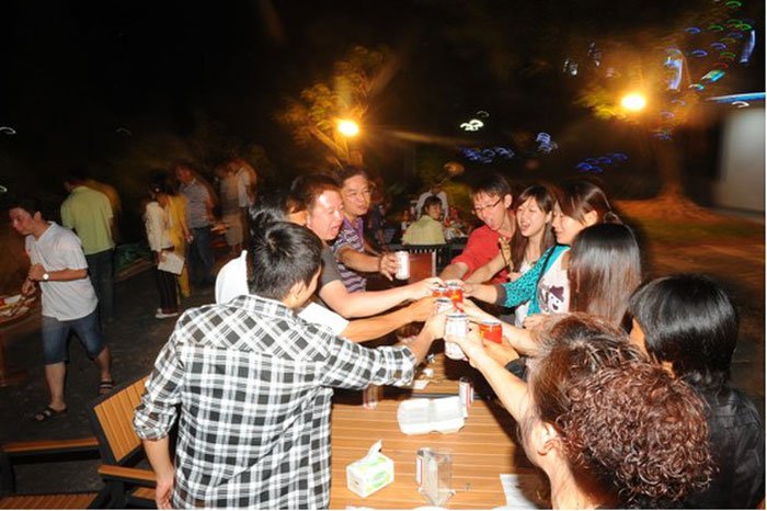 燒烤聚餐活動(dòng)中,全體員工開(kāi)懷暢飲、共敘友誼