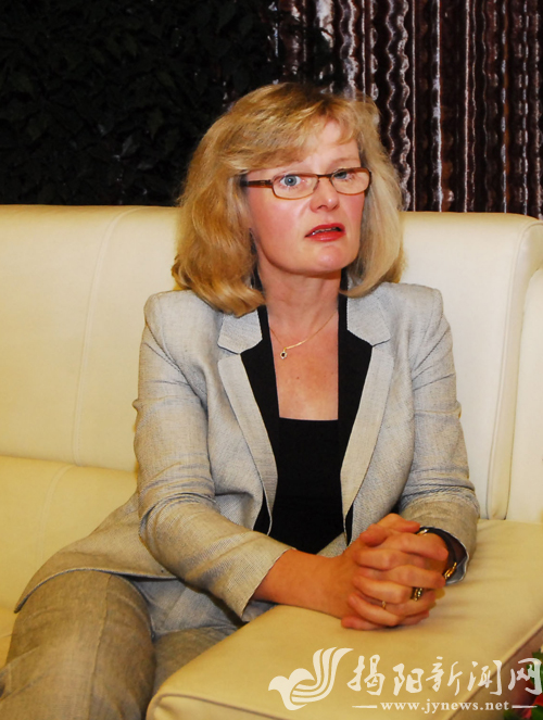 近日,德國聯邦經濟和技術部東亞經貿處處長Gerlind Heckmann女士來揭訪問。她在接受記者采訪時表示,自己深深為中德金屬生態(tài)城的魅力所折服(見圖。盧澤鴻 攝)。