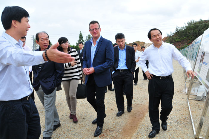 11月4日,鳴樂集團(香港)有限公司、新榕眼鏡有限公司董事主席艾博哈·穆勒、謝振南專程來揭實地調研中德金屬生態(tài)城項目,受到市委副書記、市長陳東的熱情接待。代表團先后考察了中德大道、表面處理中心、籌建中的中德產業(yè)大學以及德國專家服務基地,對園區(qū)的生態(tài)范式及與德合作理念予以高度評價,并表示:“非?春庙椖堪l(fā)展前景,希望在接下來尋找合作契機,實現共贏”。