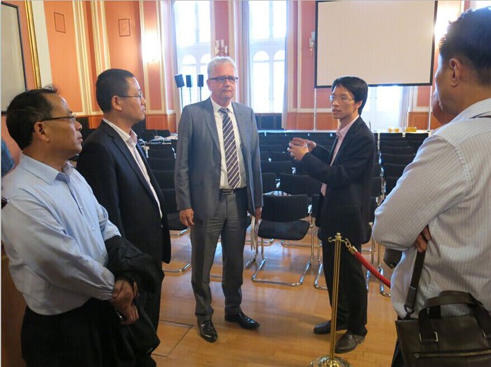 17日上午,代表團到訪德國洪堡大學(xué)研究院,詳細了解Adlershof科技園的規(guī)劃進程。WISTA管理公司的建筑子公司主管熱情接待了代表團一行,并就園區(qū)的運作模式、規(guī)劃瓶頸、政府支持等方面進行了深入介紹,為代表團在中德金屬生態(tài)城的規(guī)劃領(lǐng)域提供良好借鑒。