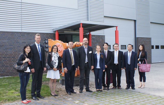 代表團(tuán)還深入Grunewald模型制造公司的鑄造車間,現(xiàn)場觀摩供應(yīng)大型汽車生產(chǎn)商的先進(jìn)汽車零部件手工鑄鐵模型。隨后,代表團(tuán)移步參觀科技園,并到訪威斯特法倫州應(yīng)用科技大學(xué),與該校的Alfred Schoo教授就北威州高校體制交流洽談。在參觀了學(xué)校機(jī)械專業(yè)學(xué)生的機(jī)電一體化試驗(yàn)臺(tái)后,代表團(tuán)滿滿的日程暫告一段落。