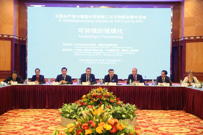 8月27日上午,由中共中央對外聯(lián)絡部、德國艾伯特基金會主辦的中德兩黨第二次可持續(xù)發(fā)展對話會在揭成功召開。來自中國共產(chǎn)黨和德國社會民主黨有關代表、專家和企業(yè)家共100多人參加了對話會。
