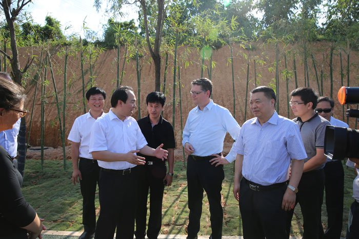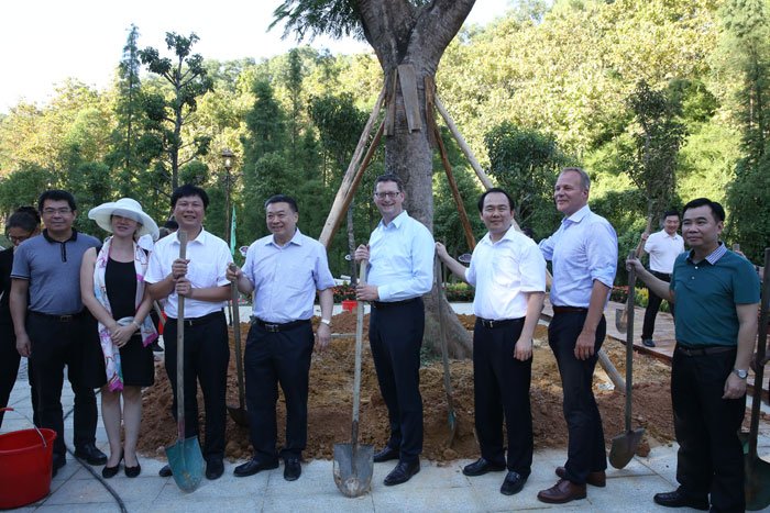 當天下午,出席對話會的中德領導嘉賓還前往中德金屬生態(tài)城參觀考察,并出席中德金屬生態(tài)城萬畝森林公園開園儀式,共同種下象征中德友誼的鳳凰樹。
