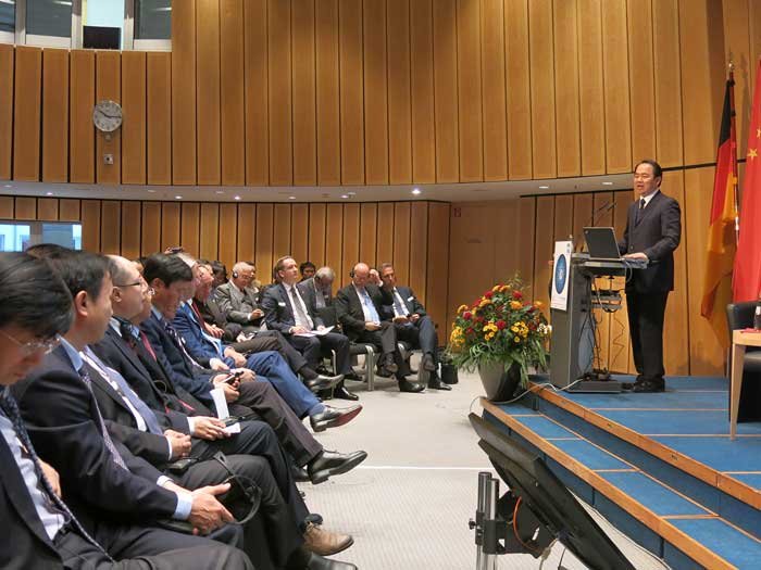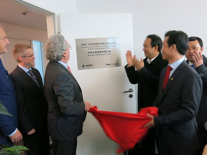 斯泰格爾先生、德國聯(lián)邦雇主協(xié)會原會長迪特•洪德博士、德國西南金屬聯(lián)合會和巴登-符騰堡州雇主協(xié)會聯(lián)合主席迪克先生還與揭陽經(jīng)貿(mào)代表團成員一同出席中德金屬集團德國子公司總部的揭牌儀式。