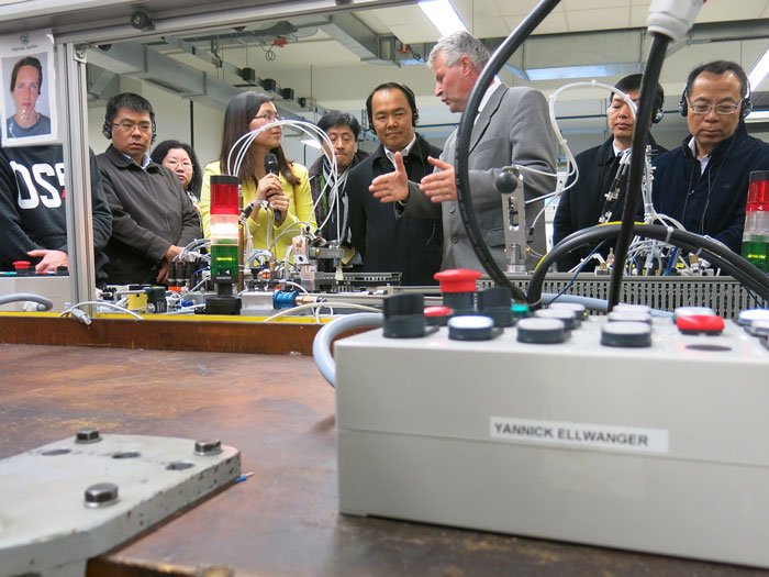 Waiblingen職業(yè)學(xué)校位于德國巴符州,是一家在職業(yè)技術(shù)培訓(xùn)領(lǐng)域有著20多年經(jīng)驗的雙元制職業(yè)教育學(xué)校。代表團的企業(yè)家們在學(xué)校參觀了 實訓(xùn)基地和授課過程,聽學(xué)校負(fù)責(zé)人介紹了相關(guān)情況,為德國的雙元制職業(yè)教育培訓(xùn)模式深深地震撼。對于高級技術(shù)工人,“求賢若渴”的企業(yè)家們希望能盡快引入雙元制職業(yè)教育機制解決企業(yè)的需求。