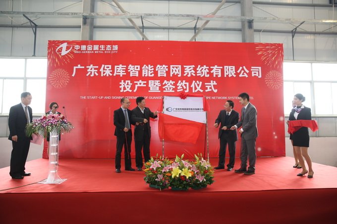 德國保庫是全球領(lǐng)先的智能管網(wǎng)生產(chǎn)服務(wù)企業(yè)。作為中德金屬生態(tài)城首批入駐的中德合資企業(yè),廣東保庫智能管網(wǎng)系統(tǒng)有限公司總投資達(dá)18億元,全部采用德國保庫生產(chǎn)線和生產(chǎn)工藝。保庫將把豐富的應(yīng)用經(jīng)驗帶到中國,特別是城市地下蓄洪管網(wǎng)和反滲排水管網(wǎng)的應(yīng)用,將有助于把傳統(tǒng)的現(xiàn)代化城市升級為可智能利用水資源的海綿型城市。
